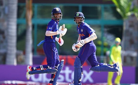 भारतका कप्तान यश धुलले १ सय १० रनको शतकीय इनिङ खेले । शेख राशिद १ सय ८ बलमा ८ चौका र १ छक्कासहित ९४ रनमा आउट भए ।दिनेश २० रनमा अविजित रहे ।