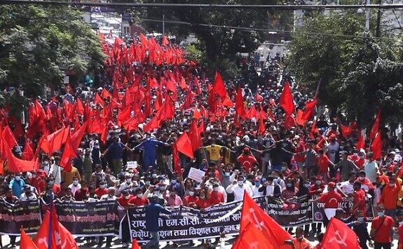 नेत्रविक्रम चन्द नेतृत्वको नेकपा लगाएत ६ दल र दुई मोर्चाले आज एमसीसीविरुद्ध प्रदर्शन गर्दै
