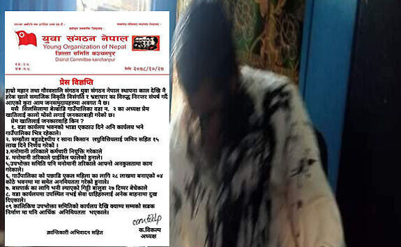 काठमाडौँ । नेत्रविक्रम चन्द नेतृत्वको नेकपाका पार्टी निकट युवा संगठन ले कञ्चनपुर जिल्लामा एक वडा अध्यक्षलाई कालोमोसो दली जनकारवाही गरिएको छ । जिल्लाको बेल्डाडी गाउँपालिका वडा नम्बर २ का अध्यक्ष प्रेम खातिलाई कालोमोसो दलेका हुन।