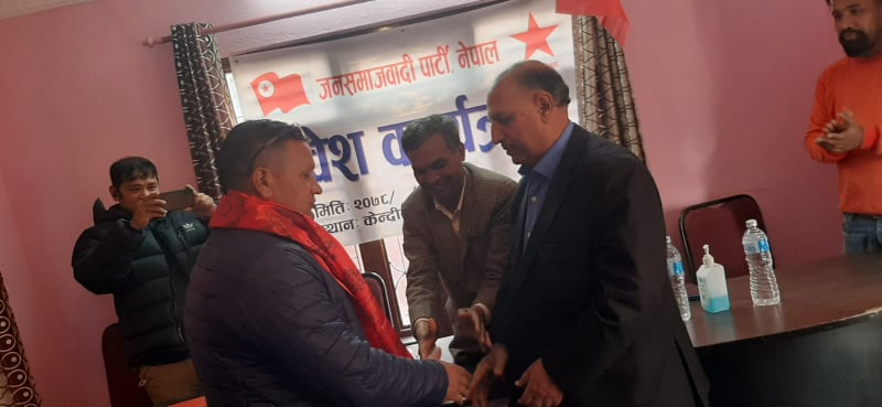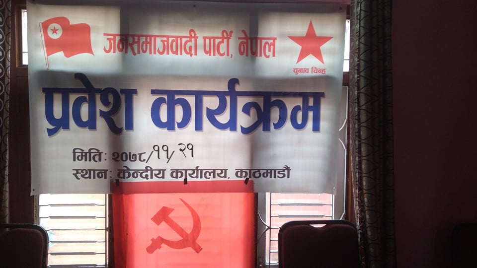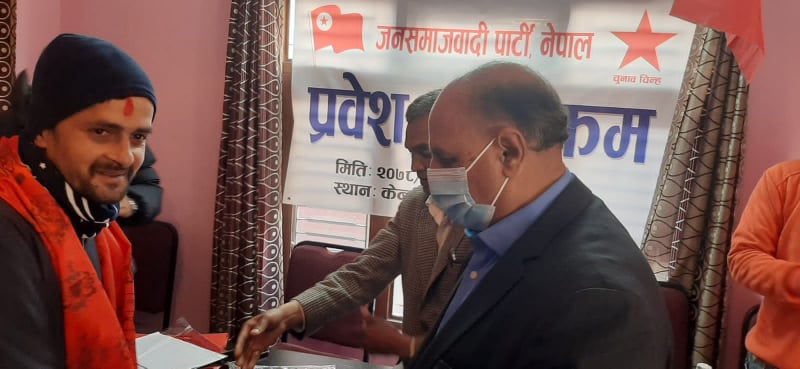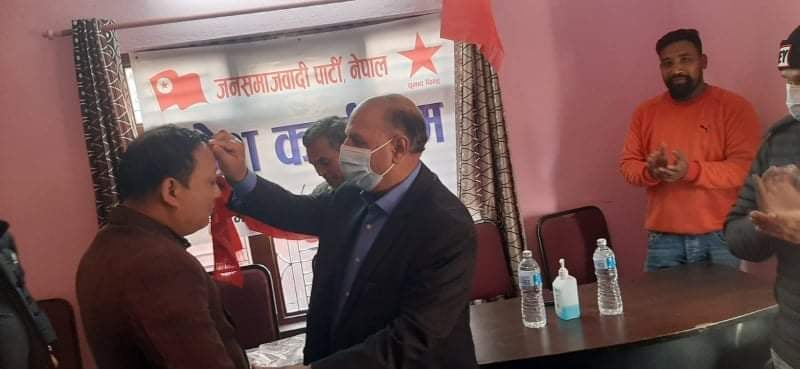 नव प्रवेशीहरुलाई जनसमाजवादी पार्टी नेपालका केन्द्रिय अध्यक्ष सुवासराज काफ्ले ज्यु, ले अविर र दोसल्ला ओडाएर स्वागत गरेका थिए। भने सम्बोधनको क्रममा यतिबेला देश जटिल मोडमा उभिएको यतिसम्म कि राष्ट्र रहने वा नरहे राष्ट्रको अस्तित्व नै समाप्त हुने खतरा बढेकोले सम्पुर्ण राष्ट्रवादी देश भक्तीहरु राष्ट्र घातीहरुको विरुद्ध गोलबन्द भएर लड्न आवश्यक रहेको बताउनु भयो ।