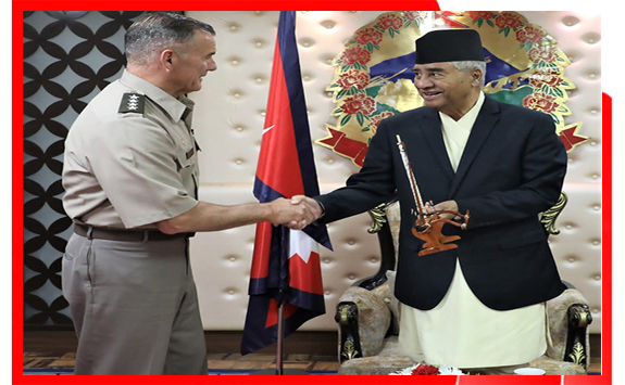 काठमाडौँ । प्रधानमन्त्री शेरबहादुर देउवा र नेपाल भ्रमणमा रहेका अमेरिकी सेनाको इन्डो प्यासिफिक (प्रशान्त क्षेत्रीय) कमाण्डका कमान्डिङ जनरल चार्ल्स ए फ्लिनबीच भेटवार्ता भएको छ । फ्लिनले शुक्रबार प्रधानमन्त्री देउवासँग प्रधानमन्त्री निवासमा भेटघाट गरेका हुन्।