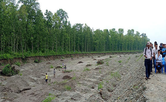 सडक डिभिजन कार्यालयले गत माघरफागुनमा चिसाङ खोलाको पश्चिमपट्टिको डिलबाट उत्तरतर्फ साढे १४ सय मिटर उच्च बाँध निर्माण गरेको थियो । बाँधबाट पश्चिम तर्फको कटान भएको जग्गामा बाँस र खयरका बिरुवा रोपिएको हो ।