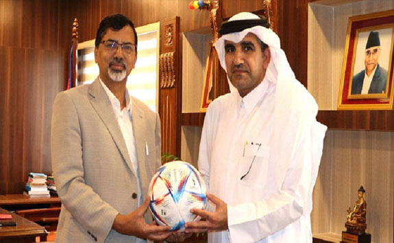 काठमाडौं । अर्थमन्त्री जनार्दन शर्मालाई फिफा विश्वकप फुटबल हेर्न निम्तो आएको छ । नेपालका लागि कतारी राजदूत युसुफ बिन मोहम्मद अहमद अल हेलले अर्थमन्त्रीलाई विश्वकप हेर्न निमन्त्रणा दिएका छन् । सिंहदरबारस्थित अर्थ मन्त्रालयमा अर्थमन्त्री शर्मासँग शिष्टाचार भेट गर्दै राजदूत युसुफले विश्वकप हेर्न निम्तो दिएका हुन् ।