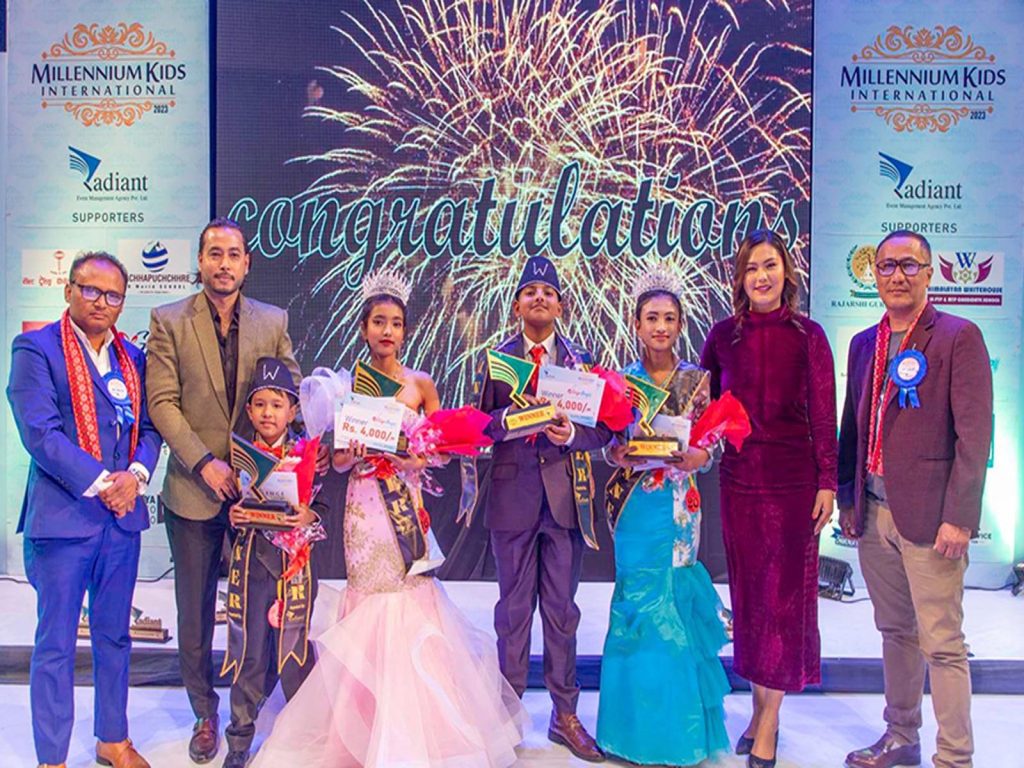 त्यस्तै ‘मिलिनियम किड्स इन्टरनेसनल’ जुनियर युवातर्फ अन्वेषा कालिकोटी विजेता चुनिदा सिनियर केटीतर्फ रिहाना महर्जनले शीर्ष उपाधि हात पारिन् । सिनियर केटीतर्फ फस्ट रनरअप साहासिका श्रेष्ठ भइन् ।रेडियन्ट इभेन्ट म्यानेजमेन्ट एजेन्सीले आयोजना गरेको प्रतियोगिताको फाइनल स्पर्धामा रेखा शाह (गायिका), हरि कर्माचार्य (गायक), लियोन श्रेष्ठ (प्रिन्सिपल राजर्षी गुरुकुल स्कुल), रुपेश थापा (फेसन फोटो ग्राफर तथा भिडियो छायांकार), आशिष थापा (प्रमुख प्रशासक हिमालयन ह्वाइट हाउस स्कुल) सम्पूर्ण देवापाटे (माछापुच्छ्रे आइबी वल्र्ड स्कुलको प्रिन्सिपल तथा हेड अफ एकडेमिक) निर्णायक रहेका थिए ।