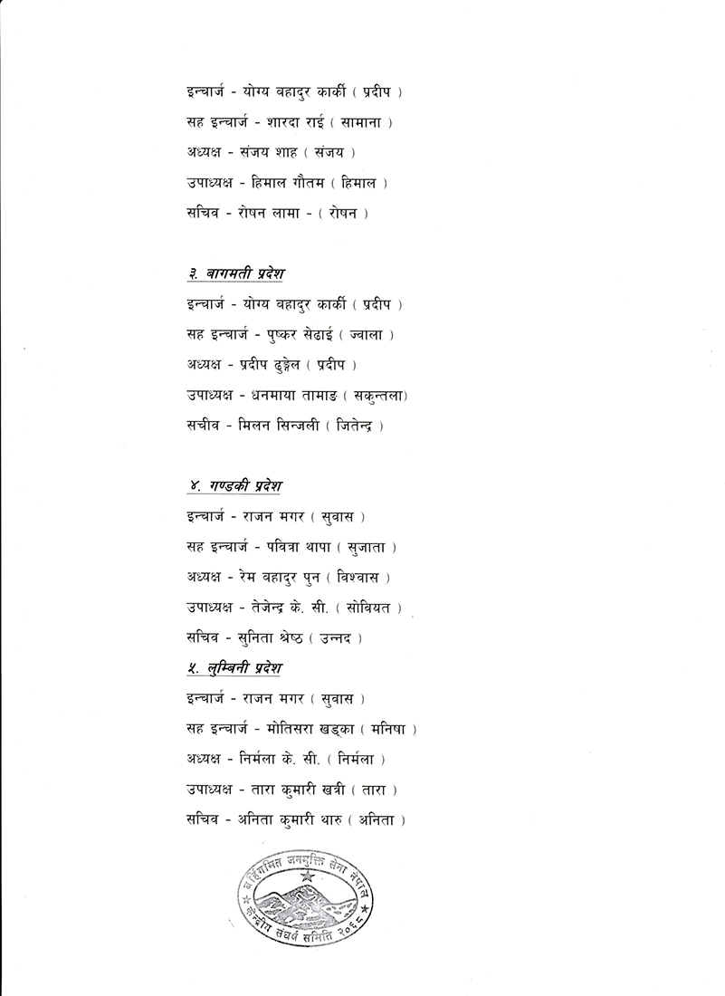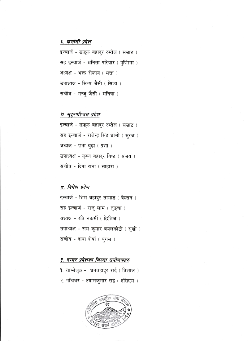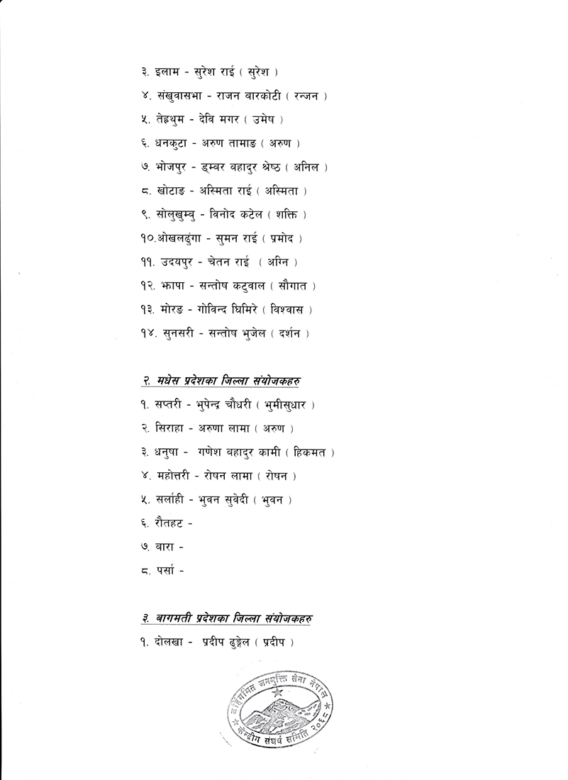 बागमती प्रदेशका जिल्ला संयोजकहरु :