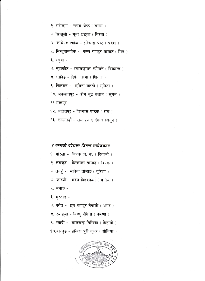 गण्डकी प्रदेशका जिल्ला संयोजकहरु :