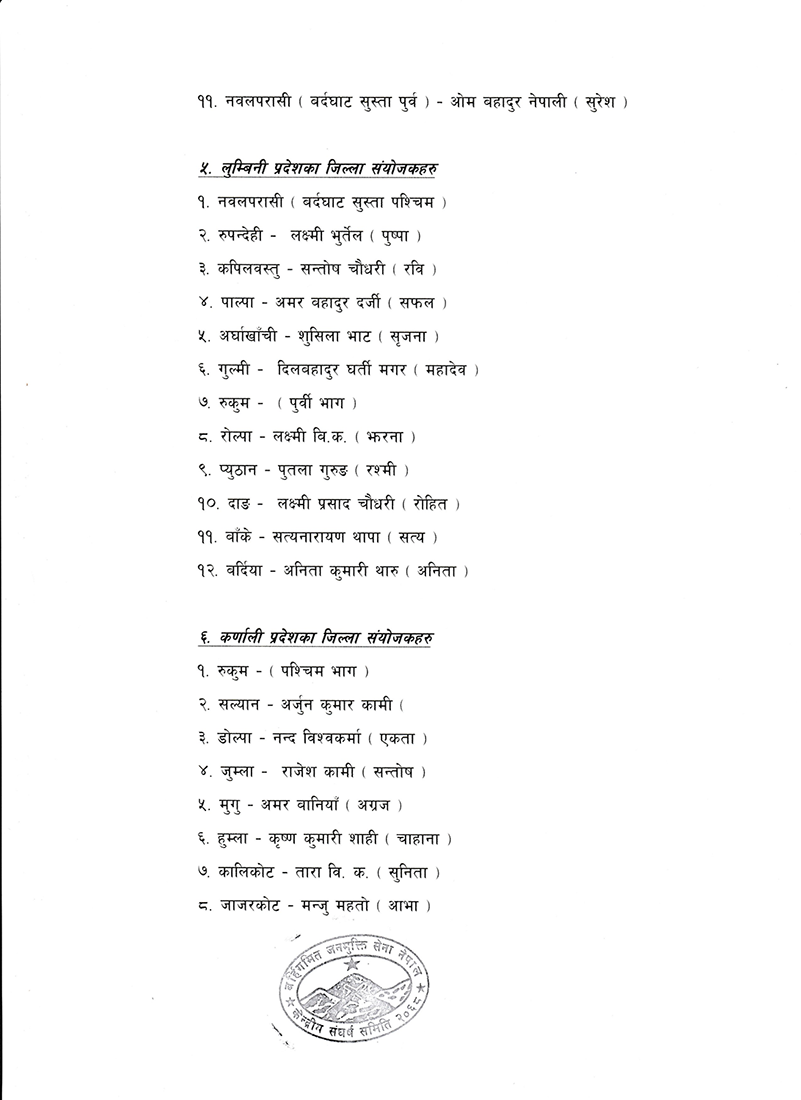 लुम्बिनी प्रदेशका जिल्ला संयोजकहरु :