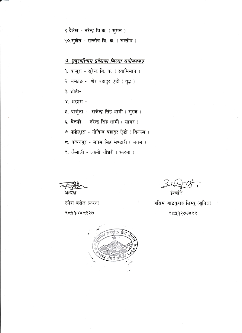 सुदुरपश्चिम प्रदेशका जिल्ला संयोजकहरु :