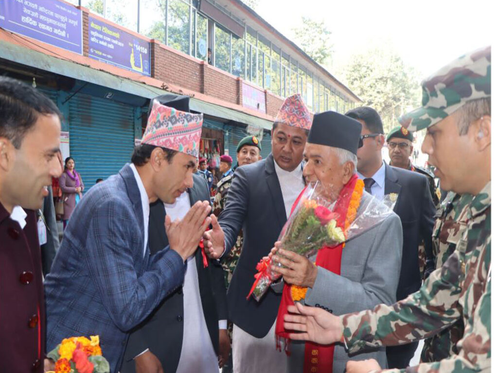 बागलुङ – राष्ट्रपति रामचन्द्र पौडेल बागलुङ बजार आएका छन् । आज बिहान १० बजेर २ मिनेटमा राष्टपति पौडेल नेपाली सेनाको हेलिकप्टरमा बागलुङ आएका हुन् । बागलुङ नगरपालिका–४ उपल्लाचौरस्थित नेपाली सेनाको गणमा पौडेल अवतरण भएपछि प्रमुख जिल्ला अधिकारी खगेन्द्र रिजालले स्वागत गरेका छन् ।