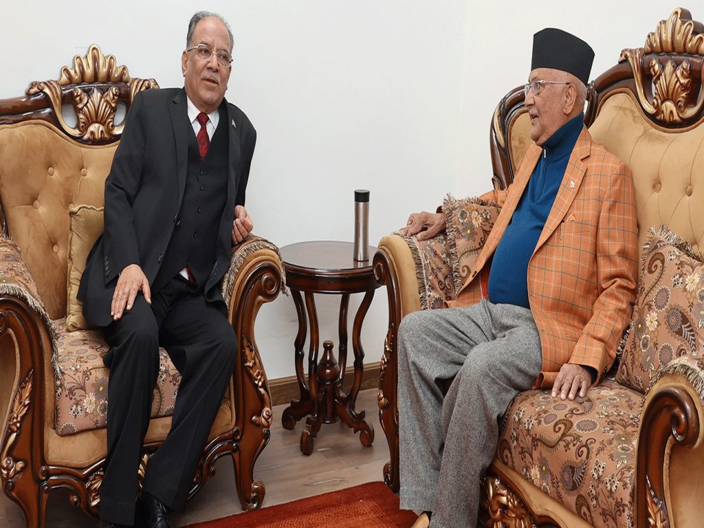 प्रधानमन्त्री प्रचण्ड र एमाले अध्यक्ष ओलीबीच भेटवार्ता