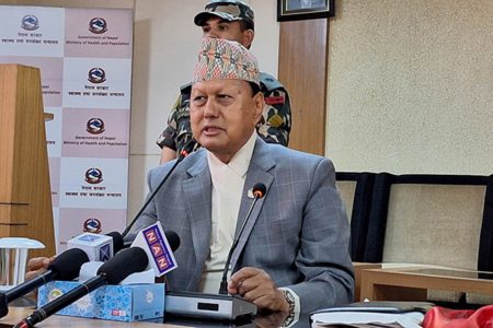 माला, खादा अस्वीकार गर्दै नवनियुक्त स्वास्थ्यमन्त्री पौडेलले मागे सुझाव