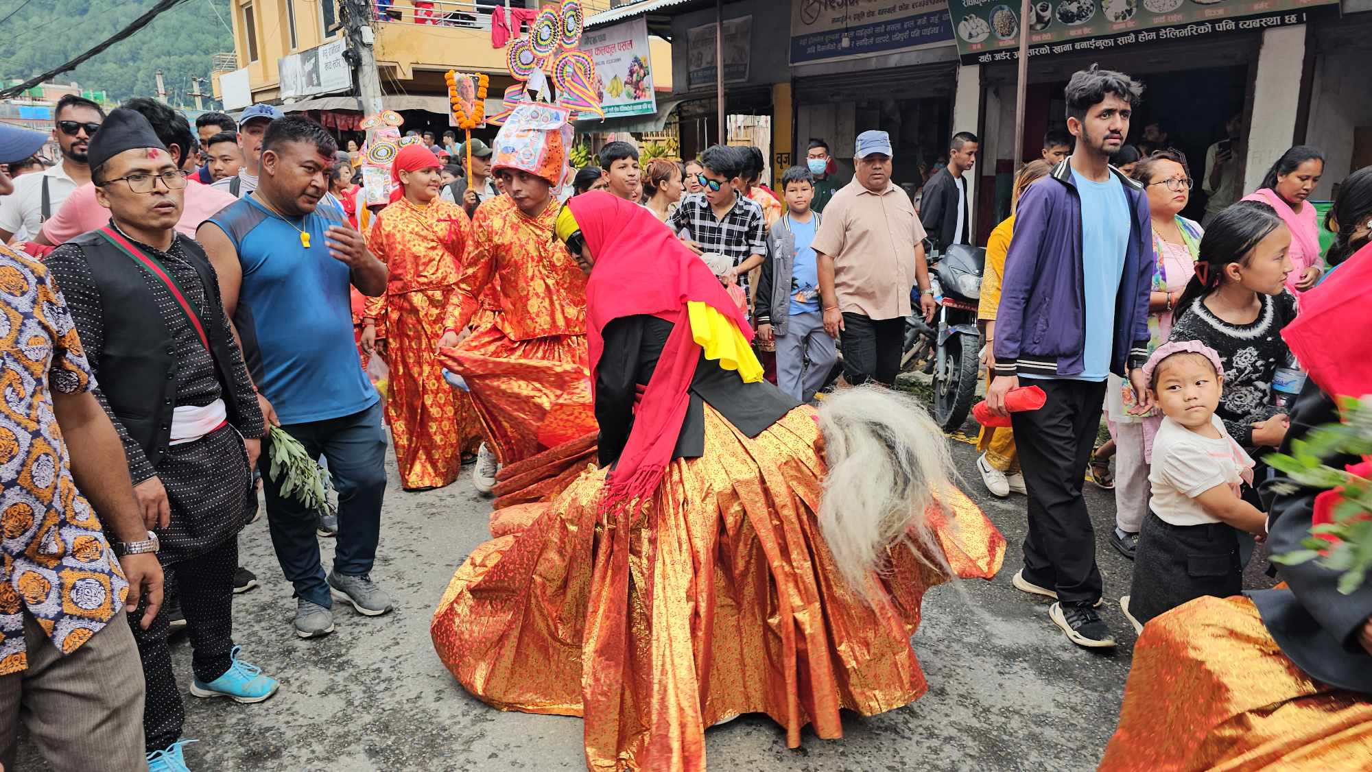 आफन्त मृत्यु भएकाहरूले मृत्यु हुनेहरूको सम्झनामा फलफूल खुवाउने र बाजा, झुर्मा पनि बजाई घोडा भन्दा अगाडी दश देखी माथि नाच्ने प्रचलन रहेको संस्थाका महासचिव राजन बाबु श्रेष्ठले बताए । तिनीहरूलाई हाम्रो भाषामा भोटे तथा चीँदार भनेका हुन्छन्। विभिन्न भेषभुषमा सबैलाई हँसाउने अर्को गाईको नानीहरू महिलाको कपडा लगाएर बनेका साना साना नानीहरू लाई गाईको नानी वा भुसुना भने गरिन्छ ।