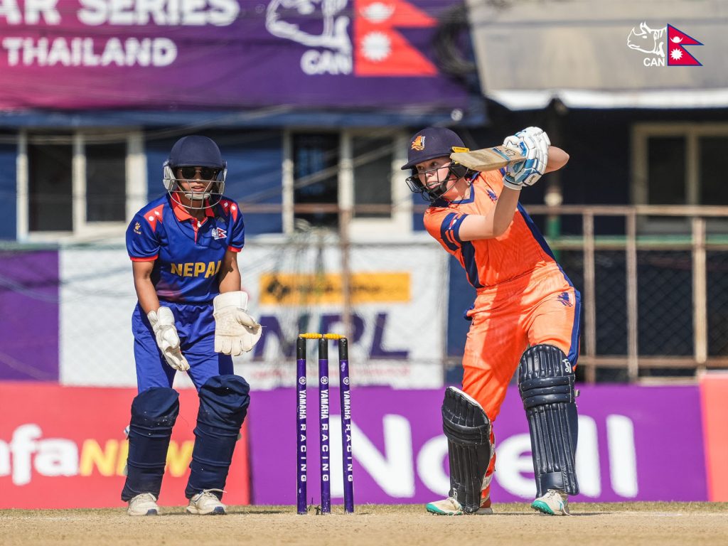 त्रिवि क्रिकेट मैदान कीर्तिपुरमा बुधबार भएको खेलमा नेदरल्यान्ड्सले नेपाललाई १० विकेटले पराजित गरेको हो । जितका लागि १४६ रनको लक्ष्य पछ्याएको नेदरल्यान्ड्सले १९ दशमलव ४ ओभरमा विना कुनै विकेटको क्षति १ सय ५१ रन बनायो । नेदरल्यान्ड्सका लाथि स्ट्री कालिसले सर्वाधिक ९८ रन बनाइन् ।